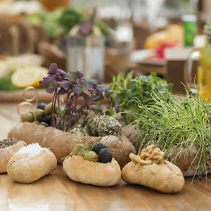 Guests can relax and have a snack in the poolside bar. It overlooks the poolside.